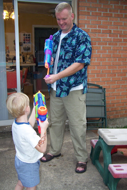 Here's my mini-wardrobe entry for PR. I've called it "My Man in Blue", even though my man in blue wears a brown uniform most of the time. (Local sheriff's office, not those delivery guys.) Anyway, I think he looks nice in blue, so I've created him a fun weekend wardrobe. (Besides, he wouldn't let me do a purple and gold wardrobe--darn Arkansan!)